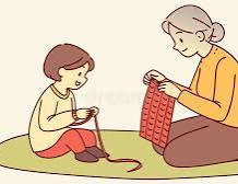 In Little Women, Louisa May Alcott describes the grandmother character, sitting in her favorite armchair, knitting quietly, while the girls gathered about her.